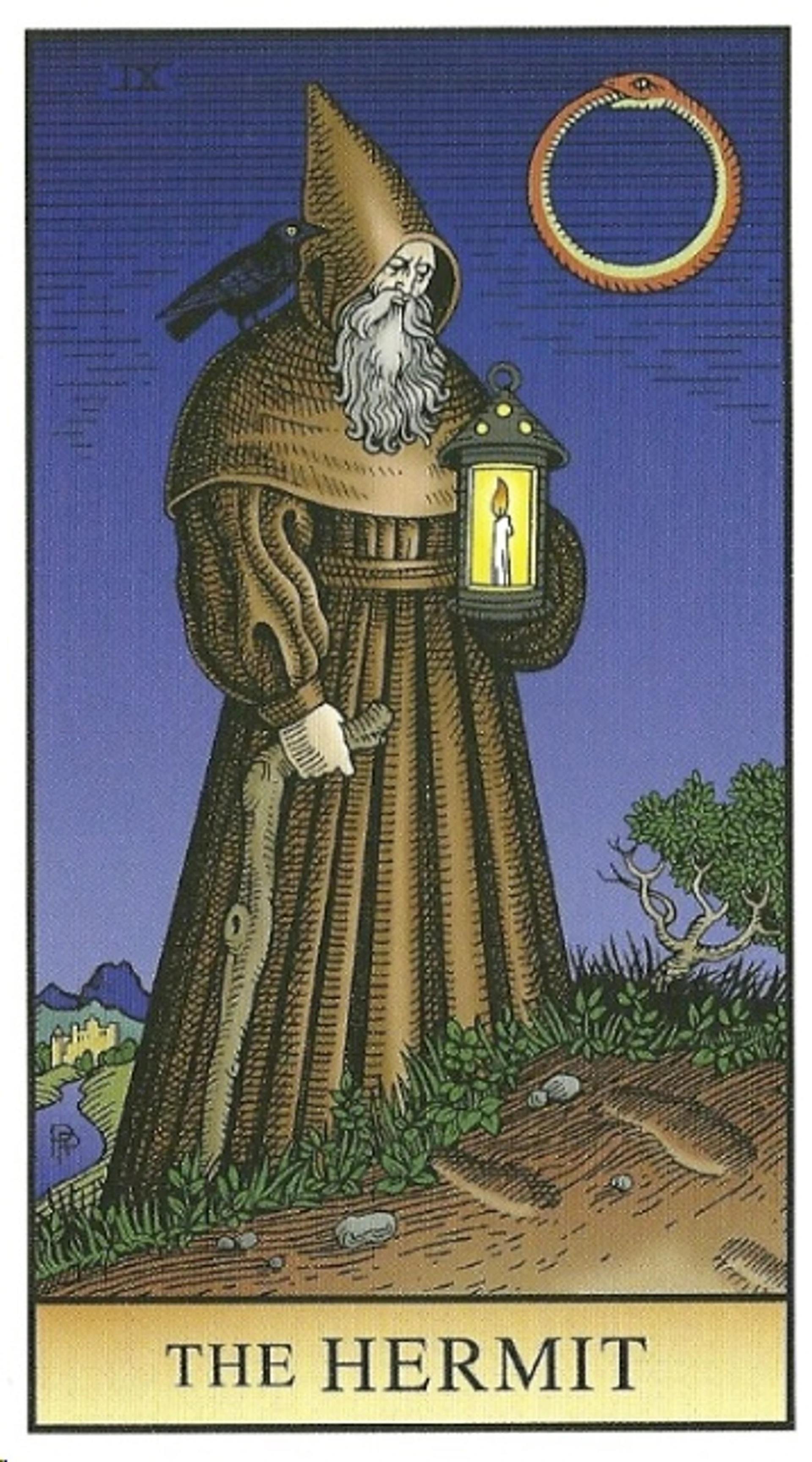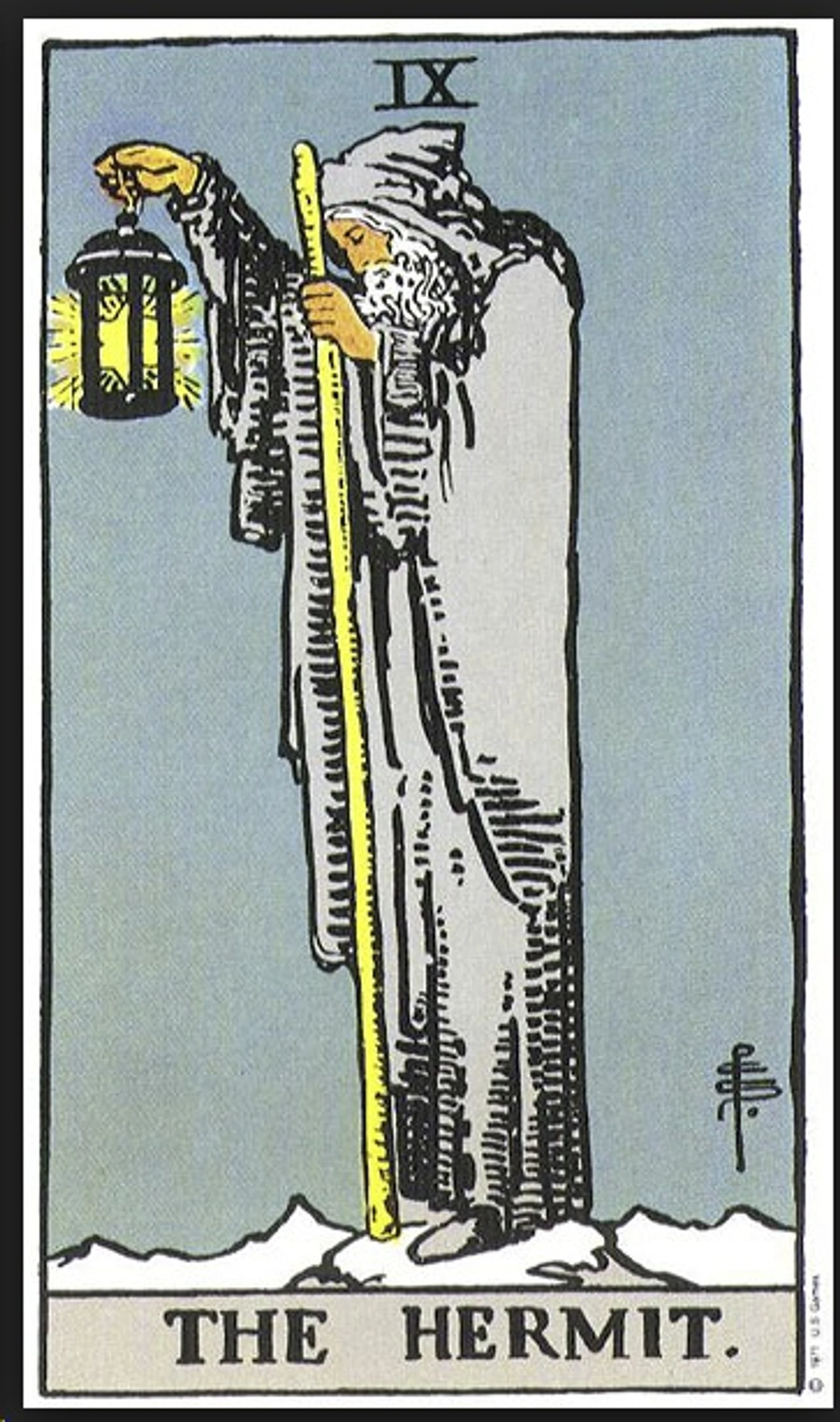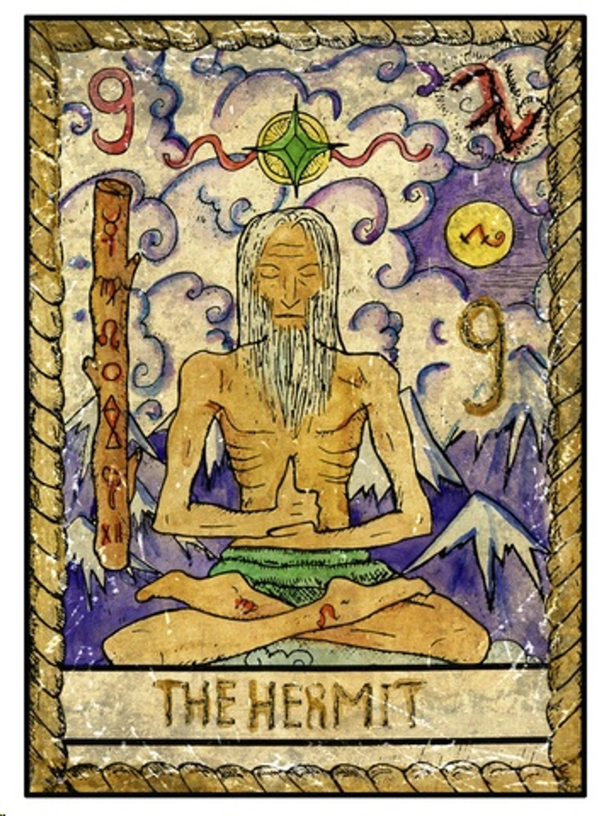 Bir arketip olarak Münzevi, iç düzenleme yolculuğunu zaten tamamlamış kişidir. Bu kartta bir huzur ve iç barış vardır - Henry David Thoreau veya Siddhartha gibi, kendine dalarak hayatı kavramış bir filozof veya gurunun hali. Münzevi figürü, farklı kültürlerin mitolojilerinde kolayca tanınır: bir ormanda, dağ zirvesinde veya köyün kenarında bir evde yaşayan pelerinli yalnız bir figür; kahramanın yolunda ona yardımcı olacak bir bilgelik tanesi almak için danışmaya geldiği bilge kişi.